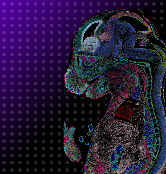 時空組學技術可從空間維度解析單個組織切片中的所有 mRNA,從而能夠在組織原位檢測細胞的基因表達及相互作用,獲取動、植物器官/組織的空間基因表達模式,進而揭秘生命奧秘,為臨床病理的精準診斷鋪平道路。目前,Stereo-seq 已被成功應用到動物胚胎發育、植物發育、腦科學、腫瘤等多個不同領域, 并成功發表包括 CNS 在內的60余篇文章。